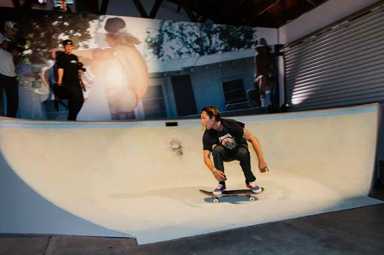 走过 Tony Alva 的卧室和 Vans Era 的鞋墙,就到了 Tony Alva 最初创造 “Off The Wall” 动作的碗池。更令人惊喜的是,Vans 还邀请到了 Tony Alva、Elijah Berle、Eric Dressen 以及 Rowan Zorilla 亲自演绎碗池滑板。