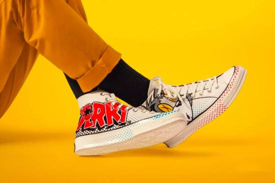 ‘猫和老鼠’这部经典动画片在很多球鞋玩家的童年中有着不可磨灭的记忆。整体鞋面以白色为主,点缀红色与绿色波点,更添一分活泼的感觉。最大的亮点在于,鞋身侧面显眼的汤姆与杰瑞的卡通形象,熟悉的搞怪表情一下令人仿佛回到童年,守着电视机看着那只永远抓不到老鼠的猫。