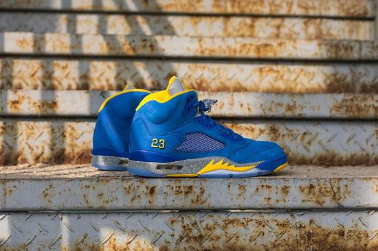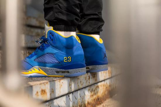 由于 Trophy Room 联名引发的超高热度,导致 Air Jordan 5 系列迎来全线起飞。而这双致敬乔丹高中母校的蓝尼配色,可能近期最具性价比的 Air Jordan 5 了。牛巴革打造鞋面,搭配后跟的 23 刺绣和 3M 反光鞋舌,用料与设计都彰显规格不低。