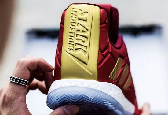 为了对钢铁侠表示致敬,adidas 今年与《复仇者联名4》联名,推出了这双战甲配色。鞋面红金装扮泛有金属光泽,纵横交织的线条纹理,与战衣的碎甲质感无比契合。后跟醒目凸显钢铁侠 ‘斯塔克工业’的专属标识,不仅看上去很高级,还特别有仪式感!