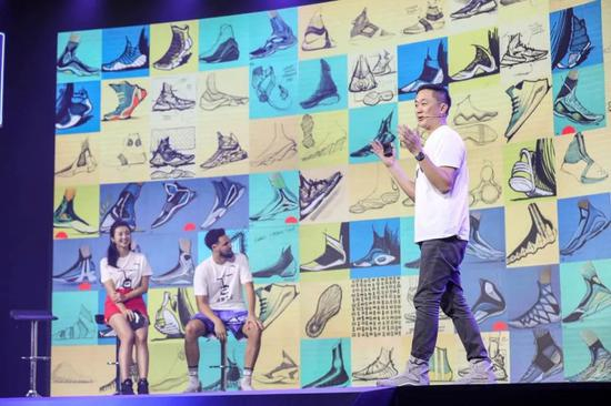 ▲安踏篮球事业部总经理蔡之本介绍KT 5的设计过程。同样,在设计过程中,KT 5也凝聚了汤普森的不同需求。安踏为汤普森提供了500张设计图,让他从中挑选出最喜欢的50张,总结出这些鞋款的共性,最后才确定了KT 5的设计方案。 在KT 5的鞋盒里有一张小卡片,上面写着“打不倒你的,只会使你更强,偶尔发挥失常,是很正常的事情。”汤普森通过这样的形式与消费者对话。 而且汤普森在参与设计时,说到“我想要严肃对待这件事”。由此也能看出,汤普森在与安踏交流时也成熟了许多。“我4年前第一次见到他,给他看KT 1的时候,他觉得都好。只要是他自己的球鞋,他觉得一切都OK,没有太多的输入。”蔡之本回忆称,“但他现在知道,因为这双球鞋代表着他,也代表了他跟他球迷的互动,所以他要很严肃地来对待这件事情。”在球鞋发布会现场,当设计师讲解球鞋的设计理念、抓地力和支撑性等内容时,坐在一旁的汤普森也不时地配合他做相应的展示。可以看出,汤普森对于这双集大成的球鞋十分满意。 汤普森曾经说过,他想成为安踏的“迈克尔·乔丹”,也想和安踏这个品牌一起成长。这五年间,汤普森系列的迅速发展也印证了这句话。蔡之本透露,未来他们会考虑给汤普森一份终身合同,让他真正意义上地代表安踏篮球。如能成真,那汤普森就真的成了“中国汤”了。声明:本文由懒熊体育原创,未经授权不得转载。