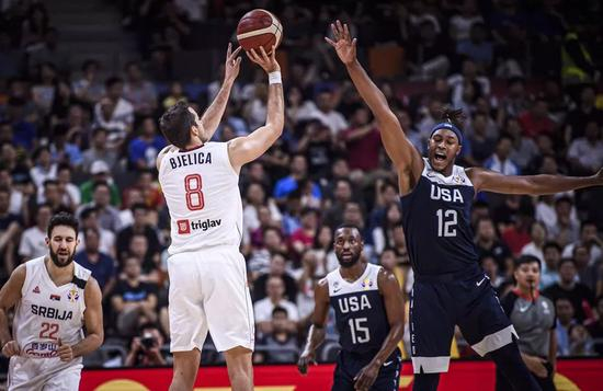 然而这还仅仅是个开始,塞尔维亚随后又打出12-0的进攻高潮。而美国队首节仅得7分。别利察这记飘逸的打板三分,杀人诛心啊!