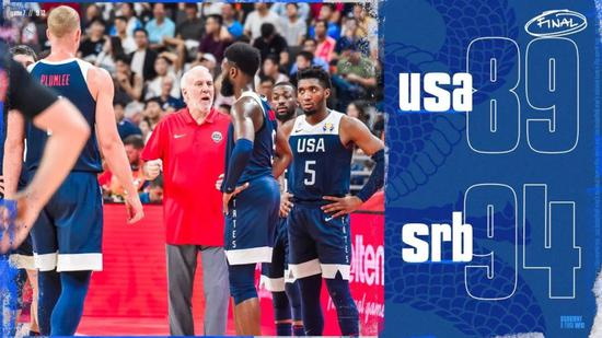 最终,塞尔维亚94-89战胜美国队。博格丹诺维奇28分4篮板6助攻,卢西奇15分4篮板,约基奇9分3篮板4助攻。美国队巴恩斯22分,肯巴-沃克18分。