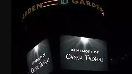 球员入场之后,凯尔特人队为小托马斯的妹妹举行了默哀仪式,大屏幕上显示了“IN MEMORY OF CHYNA THOMAS”(纪念Chyna Thomas)的标语。