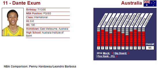 杨某人还记得,艾克萨姆选秀的时候,选秀报告上写的东西还挺牛逼的,高大型控卫,天才型控卫,球风华丽,选秀模板是便士哈达威。