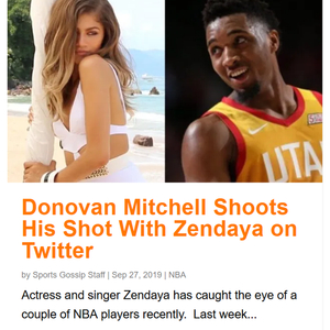 北京时间9月29日,据美国八卦媒体报道,犹他爵士当家球星多诺万-米切尔在推特上与美国女演员及歌手Zendaya互动,并且邀请她出手投篮。