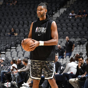 北京时间10月6日,NBA季前赛,马刺对阵魔术,赛前训练,菜鸟教练邓肯在场边持球热身!