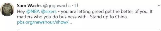 另一边,他还想进一步将此事政治化,宣称NBA就不该和中国这么一个国家合作,并攻击“76人”队的做法是出于“贪婪的商业利益”,要求NBA和“76人”队都去“对抗中国”。