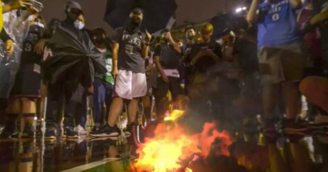 10月16日,据美媒体报道,当湖人队当家球星勒布朗-詹姆斯公开评论了莫雷事件之后,一些乱港分子当众焚烧詹姆斯的球衣。