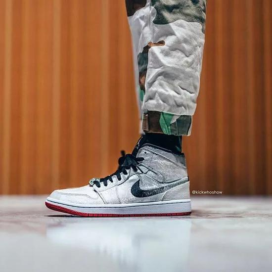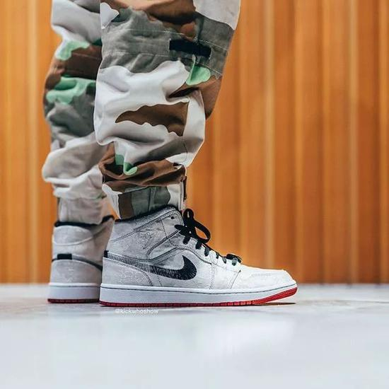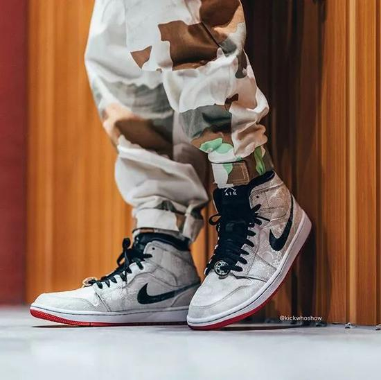 陈冠希的CLOT再次以豪华的白丝绸面料打造的AJ1 Mid联名版本,SWOOSH采用缝线方式呈现,仿古铜钱鞋带帕上带有“乔1”的字样,将于2019年12月7日发售。