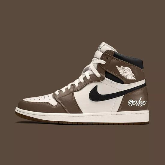 摩卡棕色打造的全新AJ1版本,实物尚未曝光,先看两张渲染图意思意思吧。