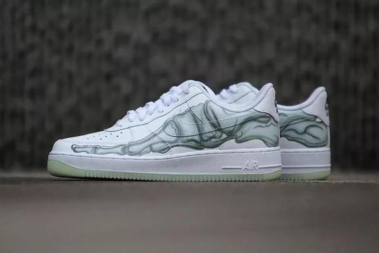• > 说到万圣节其他的鞋款时间来到2006年,Nike发售的一款Air Force 1 ‘Frankenstein’怎能不被提及。该鞋款以Frankenstein为主题呈现,运用绿色为主题配以银色的Swoosh,在鞋头与鞋后跟处辅以缝合线的细节,完美诠释了科学怪人的形象特点。除了这双经典的配色方案外,Nike还推出过许多万圣节主题的Air Force 1。