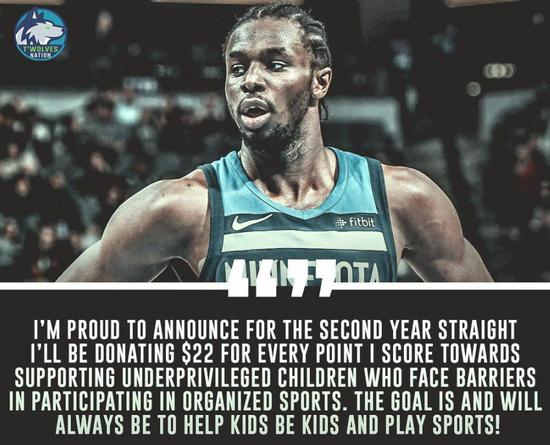 上赛季维金斯砍下了1321分,等于捐出了29062美元的善款。看吧,枸杞哥养生打球是有原因的,要是再打30个赛季,这样就可以帮到更多的人。