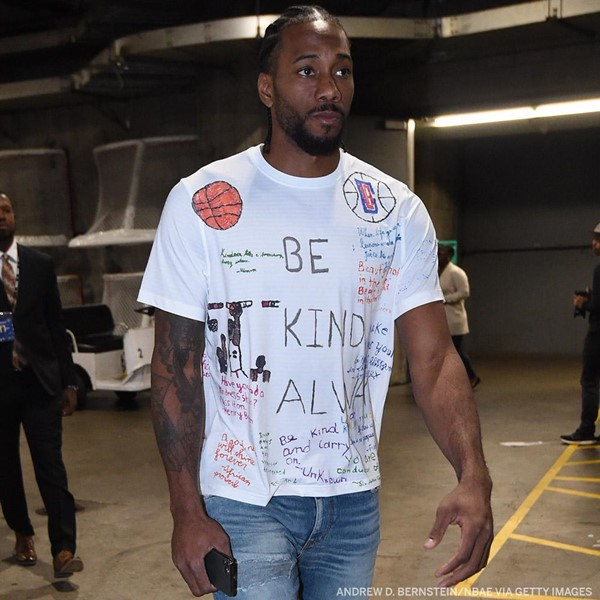 有趣的是,今天快船与开拓者的赛前,考瓦伊穿着一件胸前印有“Be Kind Always”(永远善待别人)的T嘘,似乎是希望向外界传递某种信息。