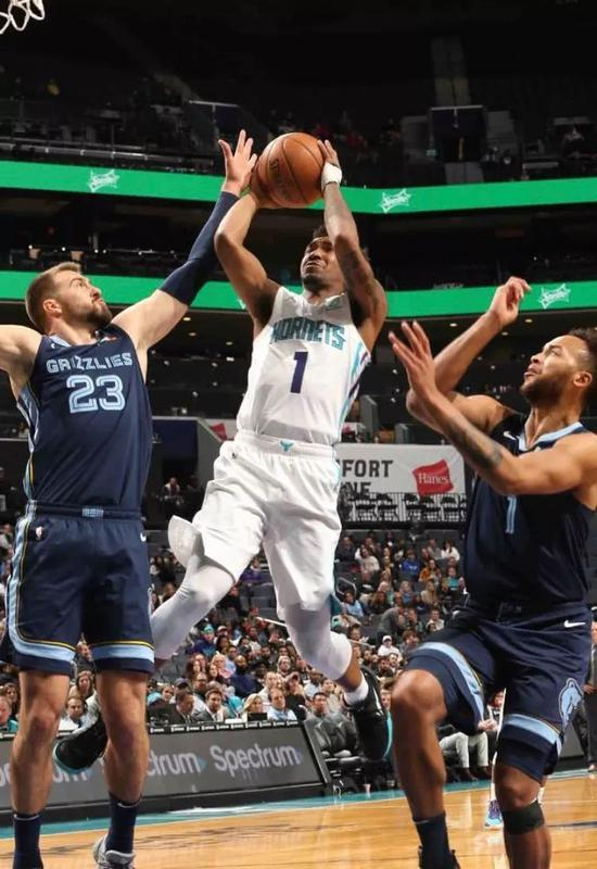 黄蜂小将蒙克骚气的无球跑位从罚球线附近绕到三分线外,接到队友科迪马丁发出的完美边线球,三分线外迎着庄神的长臂干扰,双脚离地向上高高跃起犹如毫不迟疑送出干拔跳投,这球也犹如离弦之箭径直钻进网窝。