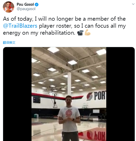 “今天,我已经不再是开拓者阵容里的一员,这样可以让我专注于康复。”加索尔在社交媒体上写道。