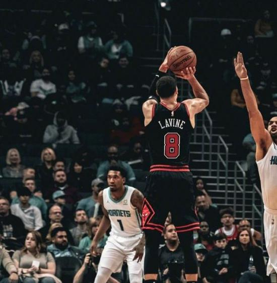 当比赛还剩下最后45.3秒时,公牛还落后8分。拉文反跑接到发球,一个投篮假动作轻晃对手后,直接远三分出手命中,下一进攻回合,运球过前场后,踩着黄蜂的队标LOGO,扬手就投,打板命中,将分差追至仅差4分。