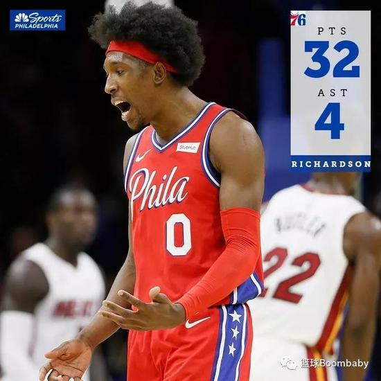 不过理查德森的作用可一点都不小,这赛季场均16分,是除了恩比德和哈里斯外的三号得分手,场均1.9个三分,是首发里最稳定的三分手。