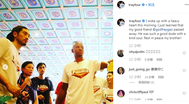 北京时间11月28日,前NBA球星雷-阿伦更新社交媒体,悼念昨日去世的中国艺人高以翔: