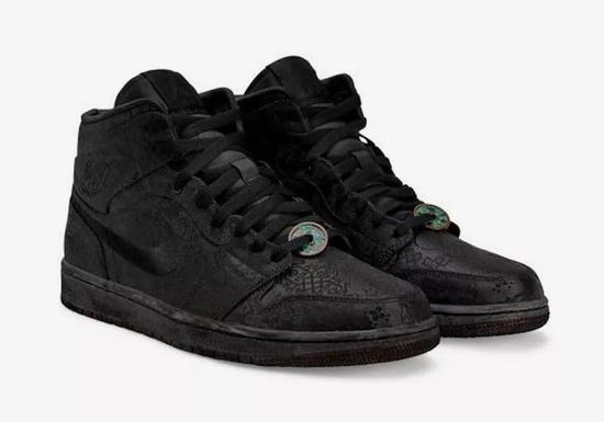 除白色版本外,CLOT以黑丝绸面料打造的AJ1 Mid联名版本曝光,SWOOSH采用缝线方式呈现,鞋头处为生锈仿古铜钱鞋,将于2019年11月29日在伦敦Dover Street Market独家发售。