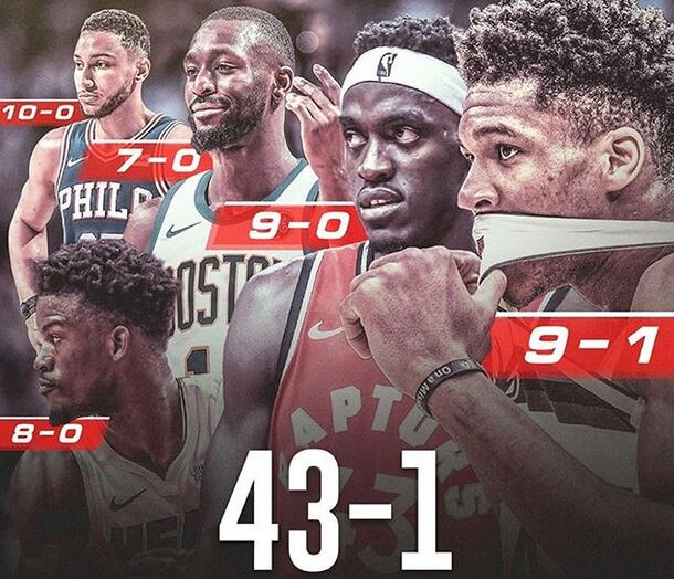 43胜1负!唯一输的还是雄鹿!东部现在还弱吗