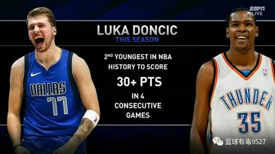 本场比赛,东契奇再次打破NBA多项历史纪录,他已经第4场比赛攻下30+,成为史上第二年轻(明年2月年满21岁)拿到这数据的球员,仅次于杜兰特。