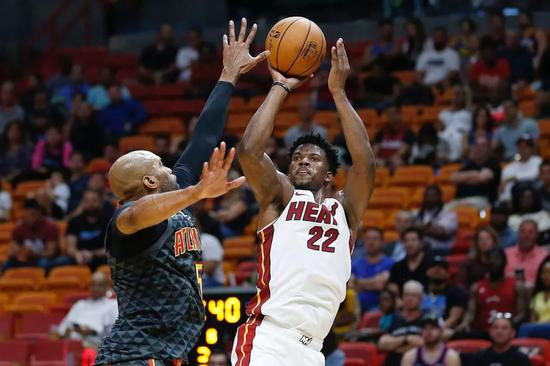 吉米-巴特勒今年投篮命中率42.6%,三分命中率24.3%,但他创造了队史最佳+/-值,+130,场均+9.3,在联盟出场超过1场的球员里排第5