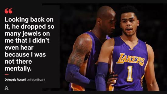 没想到勇士的溃败来的如此猝不及防,汤普森还在恢复,库里早早倒下了,拉塞尔看着身旁一群平庸的队友,只能感叹流年不利。他经历过这种感觉,在他的新秀赛季,这位96年出生的年轻人看着96年进入联盟的传奇巨星科比,感到手足无措,他不明白怎么和科比共存,湖人开局只有3胜21负,整个赛季只赢了17场比赛,19岁的拉塞尔被科比震住了。他们的年龄差距太大了,科比对他的教导,就像一个大学教授对一个七年级学生滔滔不绝地讲他听不懂的哲学。