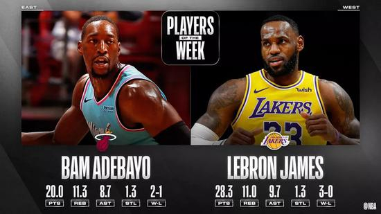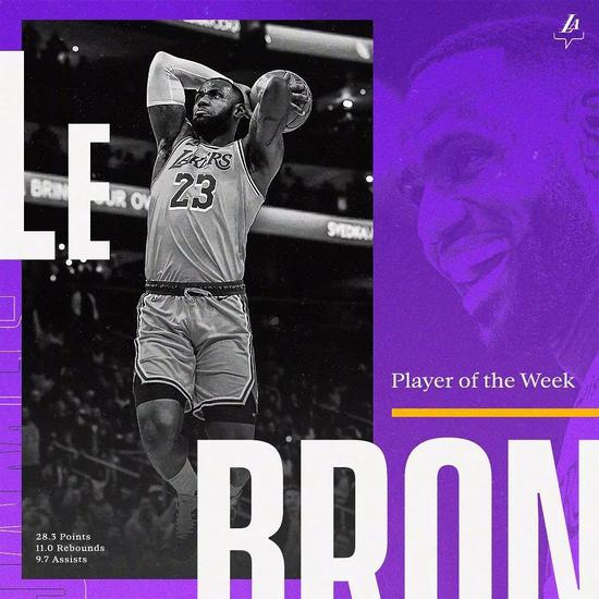 上周湖人三战全胜,詹姆斯场均28.3分11篮板9.7助攻1.3抢断。他也因此当选为上周西部最佳球员,东部最佳被热火阿德巴约获得。这是詹姆斯近两个赛季首次当选周最佳,也是他加盟湖人后的首个周最佳。詹姆斯上一次成为周最佳还要追溯到2018年的3月27日,距今630天。那一周,詹姆斯场均34.8分8.8篮板11.0助攻,投篮命中率62.7%。