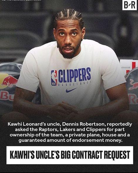 莱昂纳德舅舅的要求除了顶薪合同之外,还包括球队的部分所有权、一架私人飞机、房子、以及与球队签约之后一定数额的场下代言费。