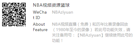欢迎关注此微信公众号:NBAziyuan,获取NBA视频直播和NBA历年比赛录像回放(1980年至今的比赛录像都有~)