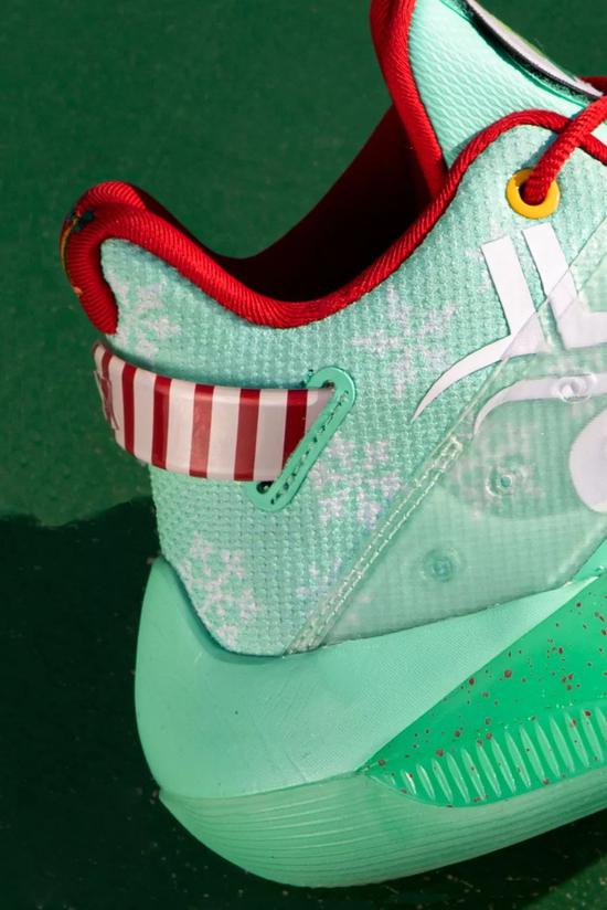 就是这样一双细节满载的全新配色,给人们带来了耳目一新的感觉。如果说首发的白蓝配色更多的是基于篮球或是林书豪个人展开的设计,那么这双圣诞配色则是展现了在特步挖掘文化故事上的实力。