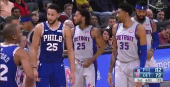 北京时间12月24日,76人客场挑战活塞,第三节的时候发生了有趣的一幕。