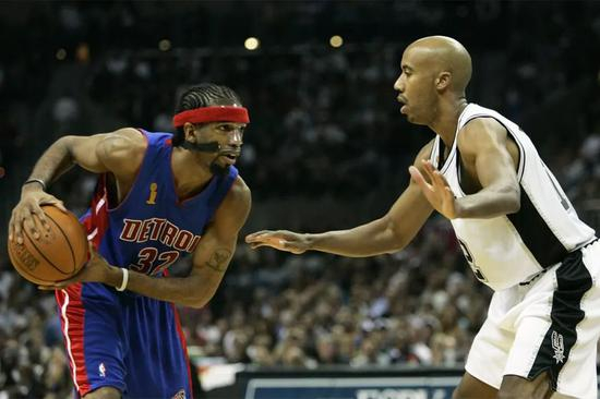 值得一提的是,在那个赛季汉密尔顿经历了三次鼻梁骨折,从那以后他就戴上了保护性的面具,这一戴就再也没有拿下来过,面具也成为了他的象征。此后的汉密尔顿和活塞对延续着这种状态,他们在2004-05赛季再度打进了总决赛,这一次他们的对手是马刺,虽然在抢七大战中不敌对手无缘连冠,但是汉密尔顿可没有让波波维奇好受,整个系列赛,负责防守他的正是当年的防守专家鲍文。