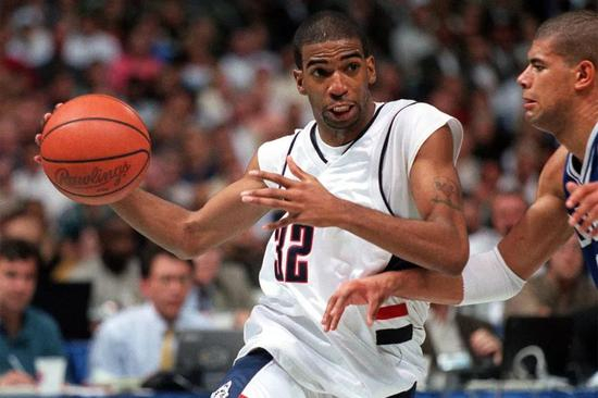 时间回到1999年的疯狂三月,汉密尔顿帮助母校康涅狄格大学获得了NCAA总冠军,他本人也当选了MOP。于是,几乎没有遗憾的汉密尔顿在那一年宣布参加选秀大会,并且在首轮第七顺位被奇才选中,从而开启了自己的职业生涯。