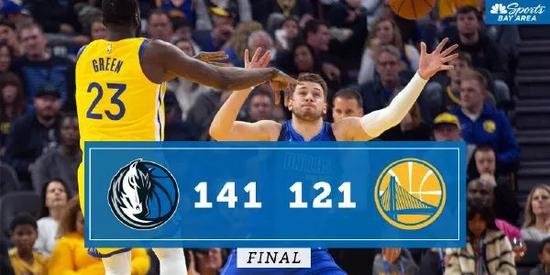 第三节独行侠势头不减,单节砍下了45分,本节又投中7记三分球。勇士则没跟不上节奏,三节后98-117落后。最终落败。