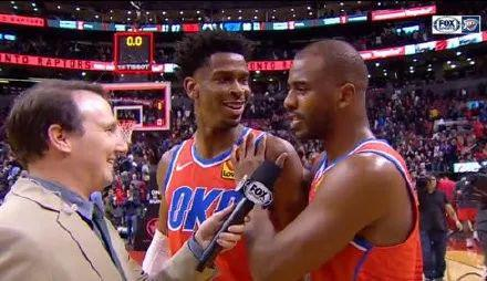 第四节一开始,雷霆落后4分,保罗上来就是几个助攻,随后又是三分又是中投的,雷霆“咻”的一下领先了5分。