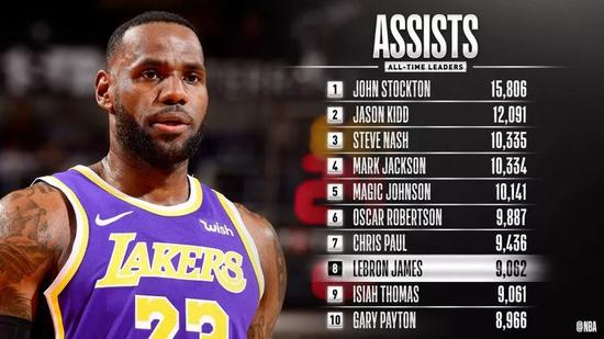 更好的组织者:詹姆斯本赛季以场均10.7次助攻领跑联盟助攻榜,在NBA历史的助攻榜单上他也排到了第八位,考虑到他还是一个追逐常规赛三万分的超级得分手,他在进攻端能的全面性让人惊叹不已。