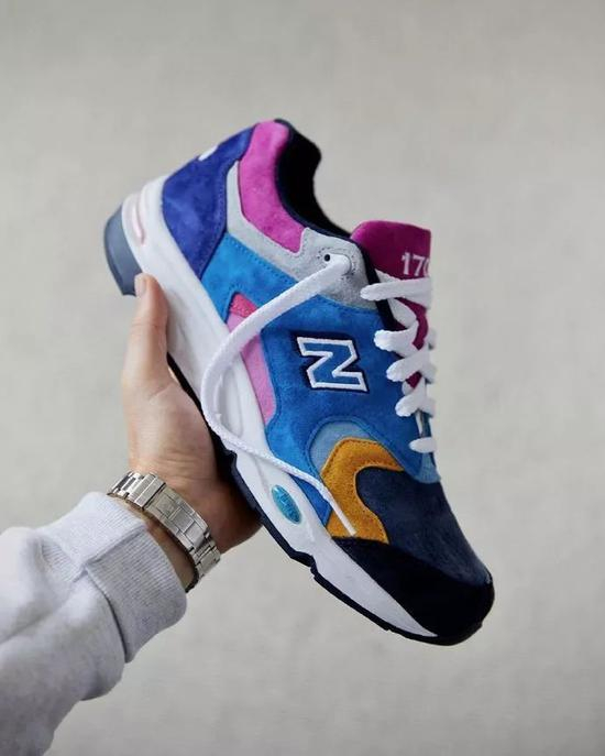 早前,KIKS 曾向各位报道过 KITH x Nike Air Force 1 Low 将会在今年发售。今天,“大表哥” Ronnie Fieg 在个人 IG 上又晒出了一双全新的 KITH x New Balance 联名鞋款。本次合作,双方以 New Balance 1700 鞋型为蓝本,采用色块撞色设计,鞋身以深浅不一的蓝色、棕色和紫罗兰色等多种颜色呈现,材质选用绒皮材质,延续了 KITH 一贯的鞋履设计风格。