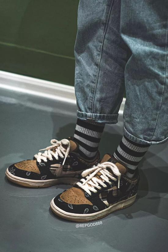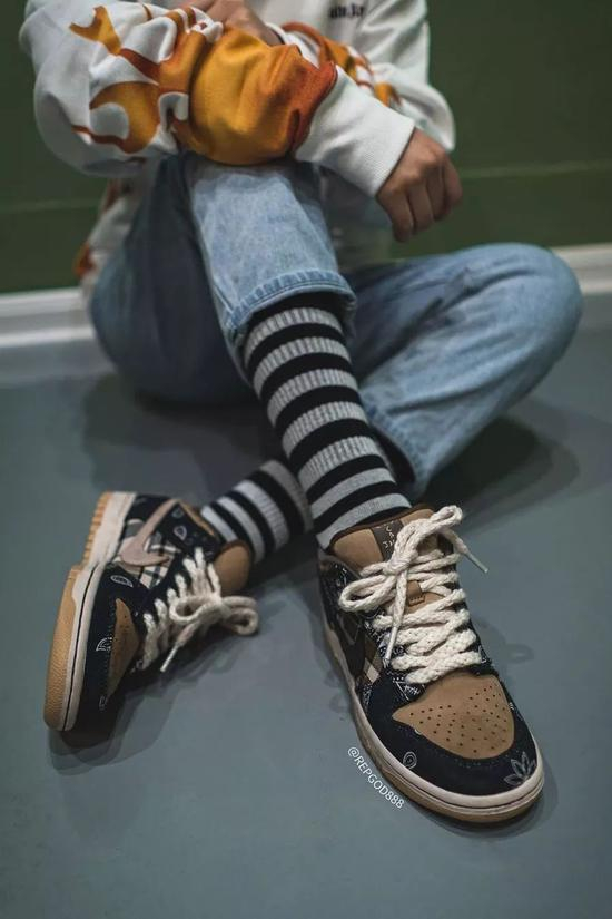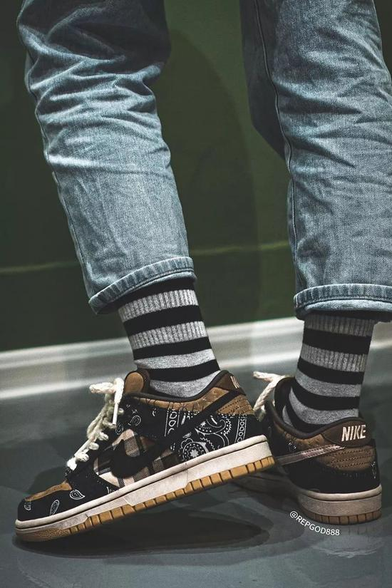 KIKS 曾向各位报道过, Tiravis Scott 在他最新的 MV 《Jack Boys》里上脚了一款 Travis Scott x Nike Dunk SB Low ,随后网上也陆续流传出各种谍照。今天,网上流出一组 Travis Scott x Nike Dunk SB Low 的高清实拍图和上脚图,各位不妨一同欣赏。