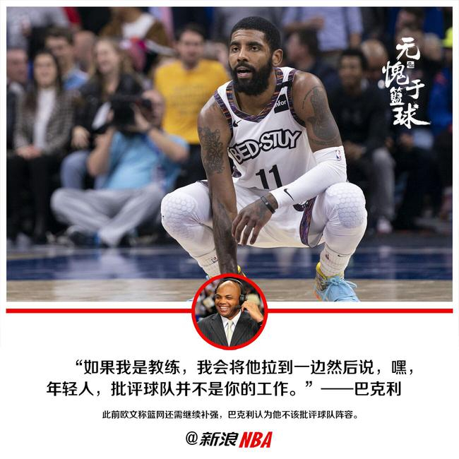 此前欧文称篮网还需要继续补充拼图。对此,巴克利表示他不该批评球队目前的状况:“如果我是教练,我首先会将他拉到一边然后说,‘嘿,年轻人,批评球队并不是你的工作。”