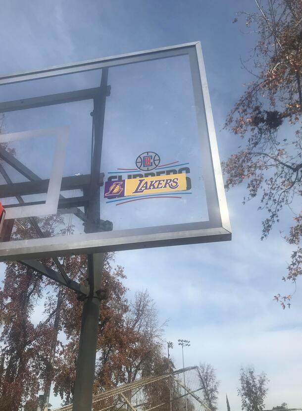 北京时间1月19日,快船队近日赞助了洛杉矶当地的一个公园,但哪曾想到,一位湖人球迷竟然把所有印有快船标签的地方都贴上了湖人标签……