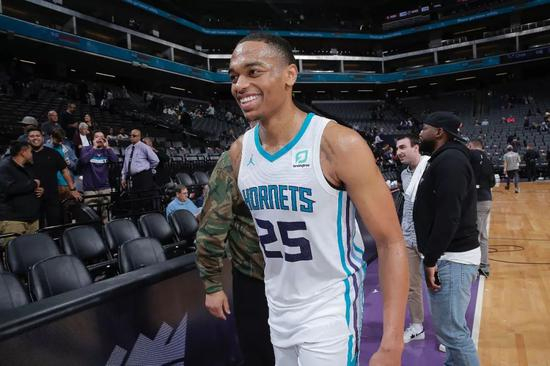 黄蜂新秀PJ华盛顿首秀就投进了7记三分,拿下了27分4篮板,不过之后他再也没有打出过更好的得分表现,一度还撞上了新秀墙,连续五场得分不上双。直到进入12月份之后,华盛顿终于重新找回了手感,连续10场得分上双,至今为止场均拿到12.4分5.5篮板2.0助攻,三分命中率高达40.8%。