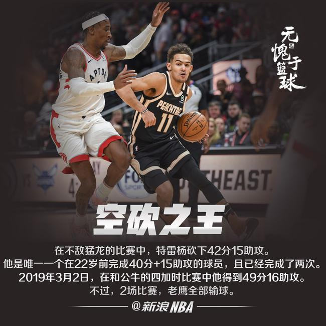 北京时间1月21日,老鹰不敌猛龙,特雷杨再次空砍,而且,他这个42+15,是NBA历史第一,而且完成过两次,但球队全部输球。