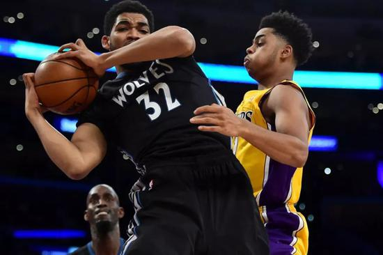 2015-16赛季的揭幕战,森林狼面对湖人,2015届的状元榜眼彼此迎来首秀。最终榜眼拉塞尔只拿到了4分2篮板,状元唐斯则大放异彩,全场10中6,拿到14分12篮板的两双,唐斯的新秀赛季场均可以拿到18.3分10.5篮板,绝对的状元表现。