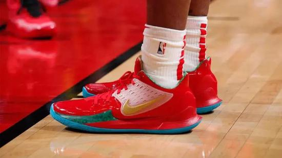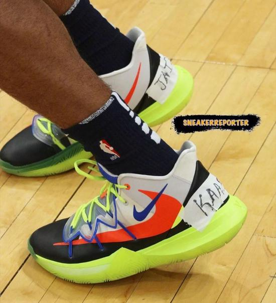 莫兰特也曾在比赛中多次上脚过欧文5多个配色版本,以及Nike Kyrie 2 Low 蟹老板配色。