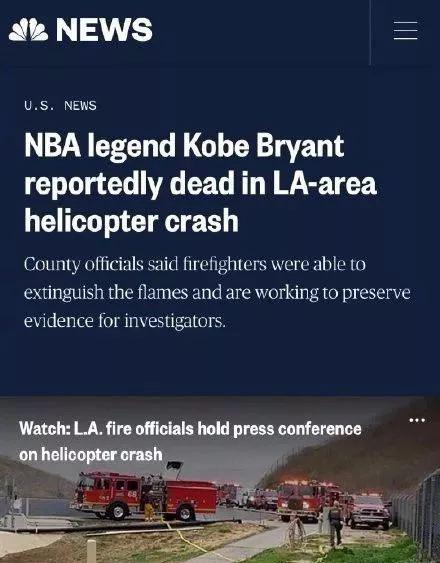 今天凌晨4点根据多家媒体报道,科比-布莱恩特在一起直升飞机事故中去世。