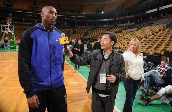 ▲ 黎双富2011年在波士顿TD花园采访科比。