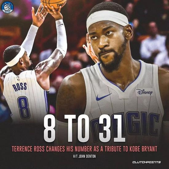 魔术球员特伦斯-罗斯也得到许可,将从8号改穿31号。另外快船前锋哈克利斯,也将从8号改穿11号。76人后卫扎伊尔-史密斯,同样从8号改穿5号。