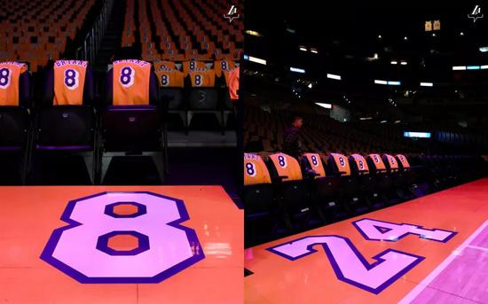 除此之外,湖人官方还为科比和GiGi,预留了他们此前观看湖人对阵独行侠比赛时的座位。目前这两个座位,已经被摆上了他们二人的球衣和鲜花,来表达缅怀之情。